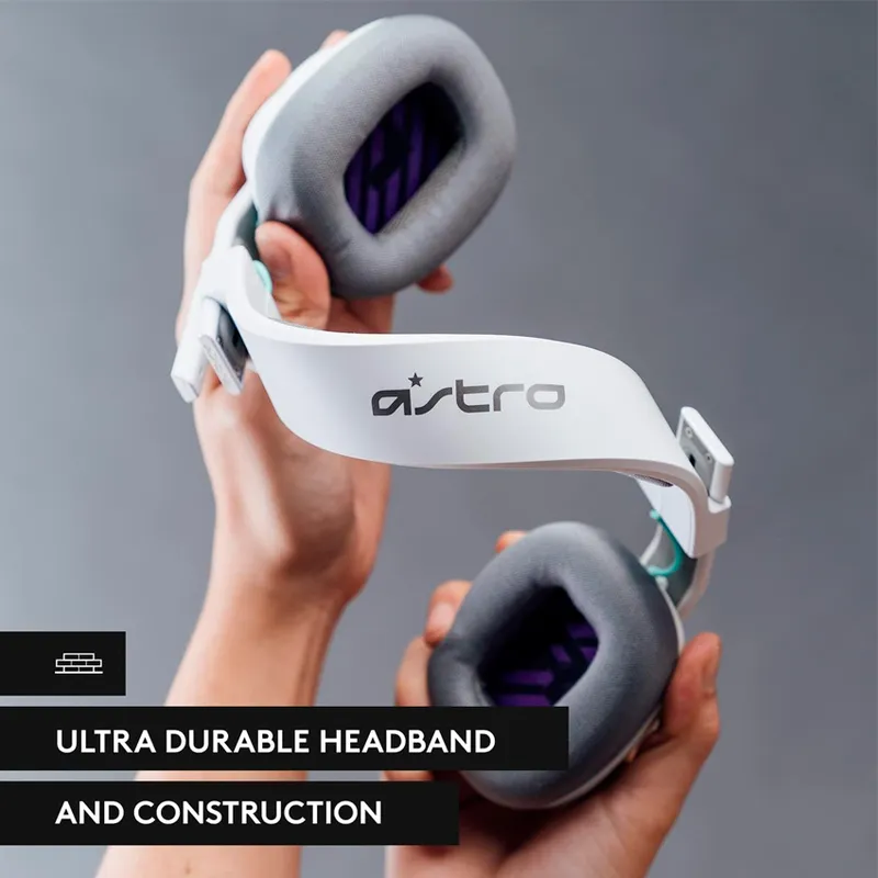El Astro A10 Gen2 White destaca por su diseño robusto y moderno, con líneas angulares y una estructura sólida que proyecta resistencia. Su acabado en blanco le da un aspecto limpio y profesional, contrastando con detalles en negro que acentúan su estilo gamer.