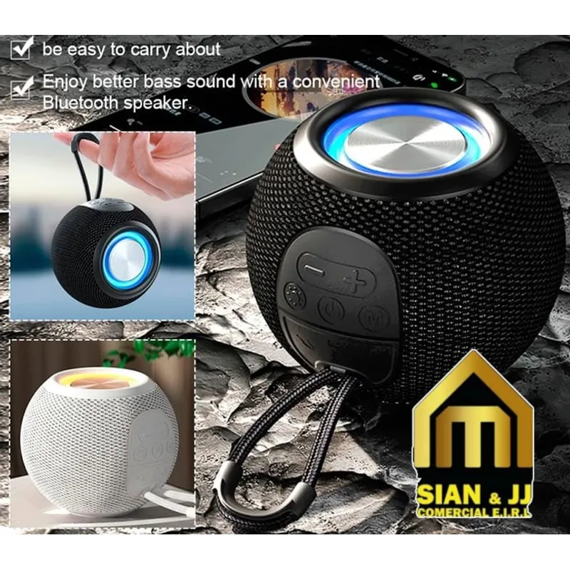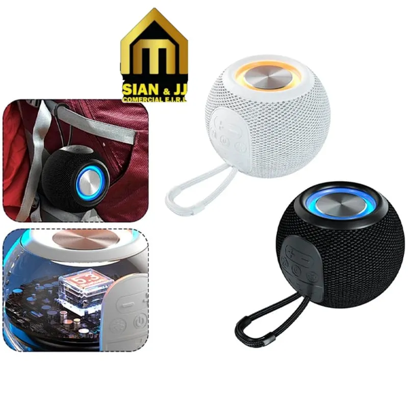 La superficie del parlante está cubierta por una malla textil que protege los altavoces, mientras que los controles físicos se integran de forma discreta en la parte superior o lateral, permitiendo un manejo intuitivo sin romper su estética. Su diseño incluye también luces LED decorativas en algunos modelos, que se encienden al ritmo de la música para crear una atmósfera dinámica y divertida.