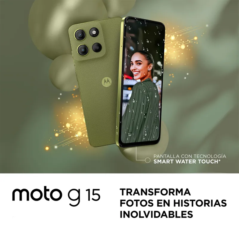 En la parte trasera, el módulo de cámaras se integra de forma limpia con el diseño, alineado verticalmente para ofrecer un look moderno y organizado. El Moto G15 está disponible en varios colores sutiles y juveniles que se adaptan a diferentes estilos. Además, su estructura curva en los bordes ofrece un agarre cómodo, lo que facilita su uso con una sola mano. En conjunto, el diseño del Moto G15 logra un equilibrio entre elegancia, practicidad y un estilo fresco, pensado especialmente para usuarios jóvenes que buscan un smartphone funcional con buena apariencia
