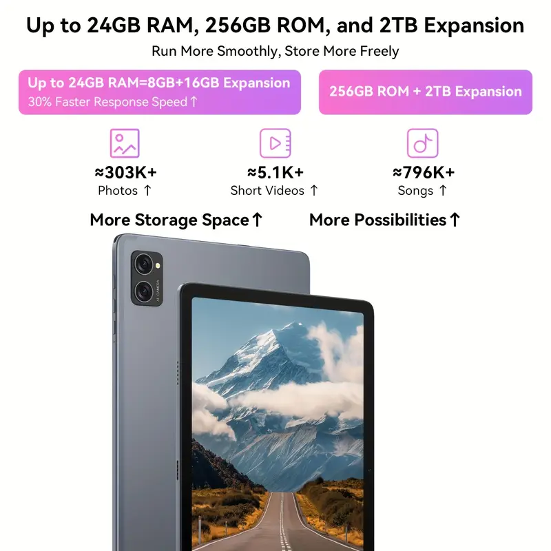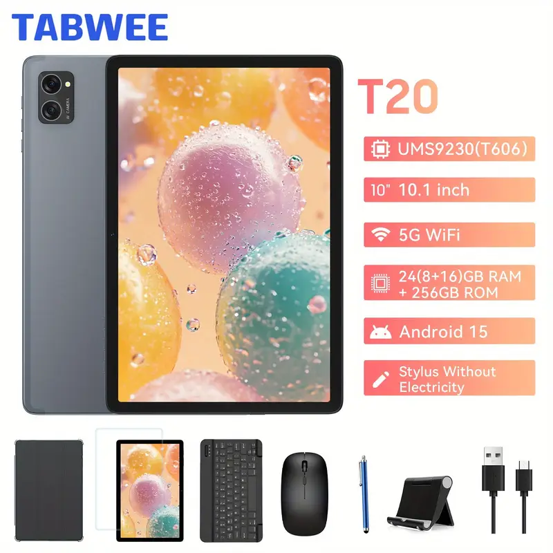 La TABWEE T20 luce un diseño elegante y contemporáneo, ideal para quienes buscan un dispositivo que combine estilo y practicidad. Su cuerpo delgado y ligero presenta un acabado metálico suave al tacto, generalmente en tonos sobrios como gris grafito o plata, que transmiten modernidad y sofisticación.
